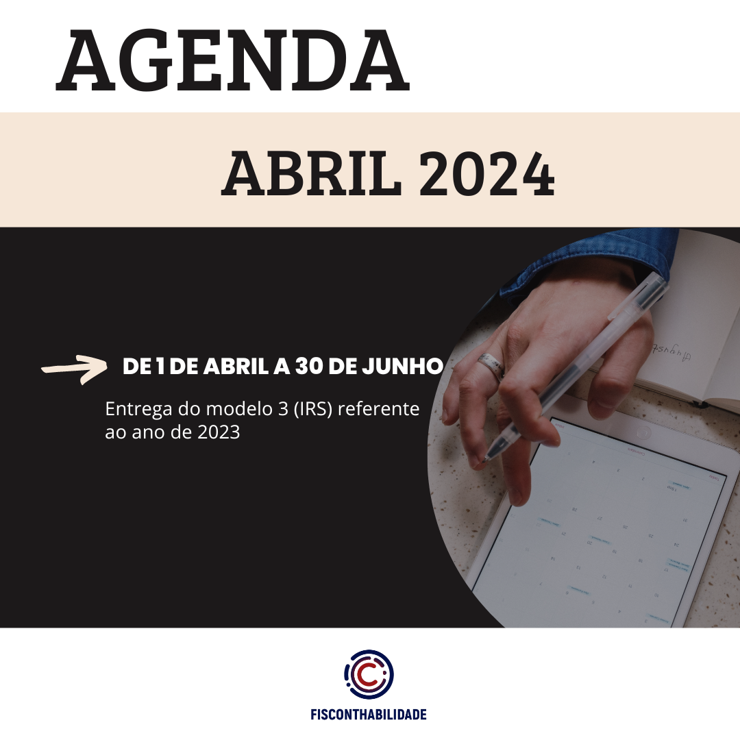 - De 1 de abril a 30 de Junho - Entrega do modelo 3 (IRS), referente ao ano de 2023.