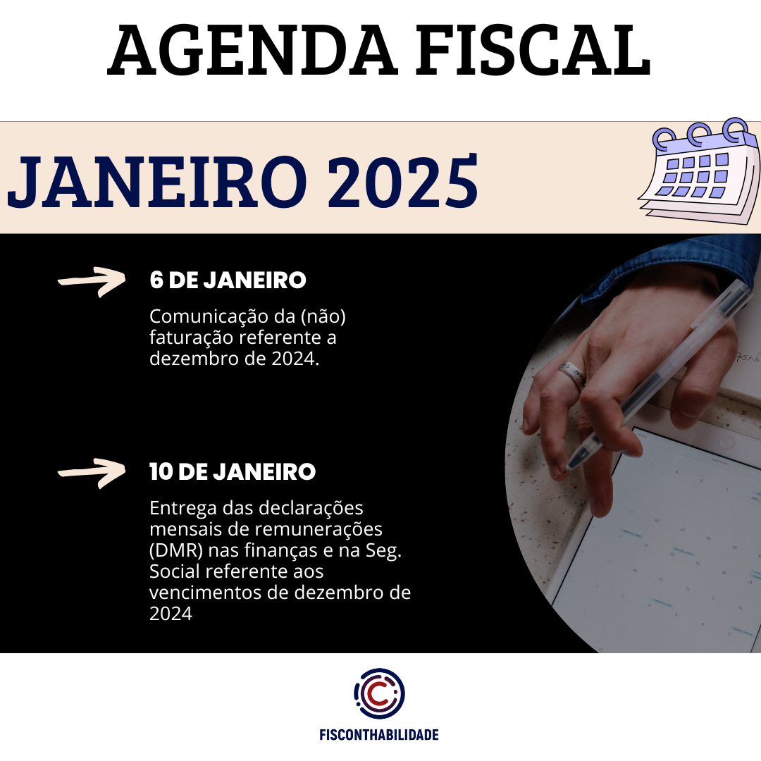 Apresentamos de seguida o calendário fiscal do mês de janeiro de 2025: