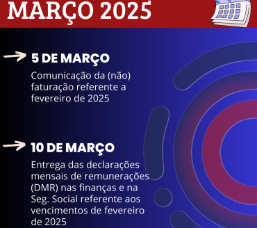 Apresentamos de seguida o calendário fiscal do mês de Março de 2025: