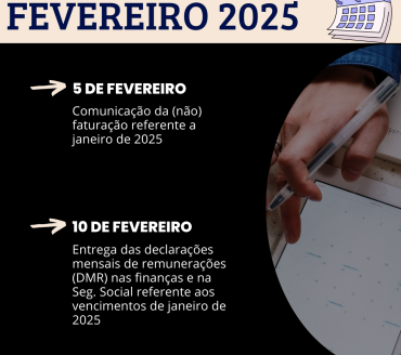 Apresentamos de seguida o calendário fiscal do mês de Fevereiro de 2025: