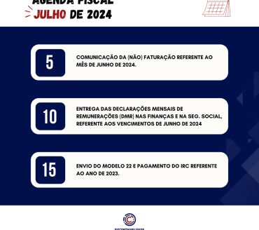Apresentamos de seguida o calendário fiscal do mês de julho de 2024: