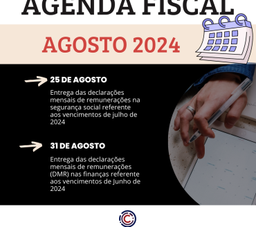 Apresentamos de seguida o calendário fiscal do mês de Agosto de 2024: