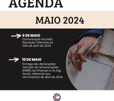 Apresentamos de seguida o calendário fiscal do mês de maio de 2024: