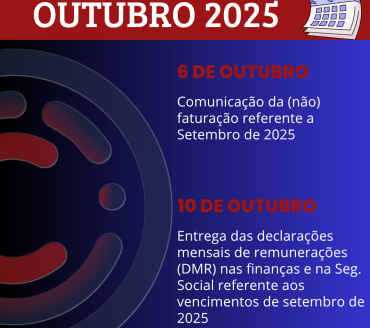 Apresentamos de seguida o calendário fiscal do mês de Outubro de 2025: